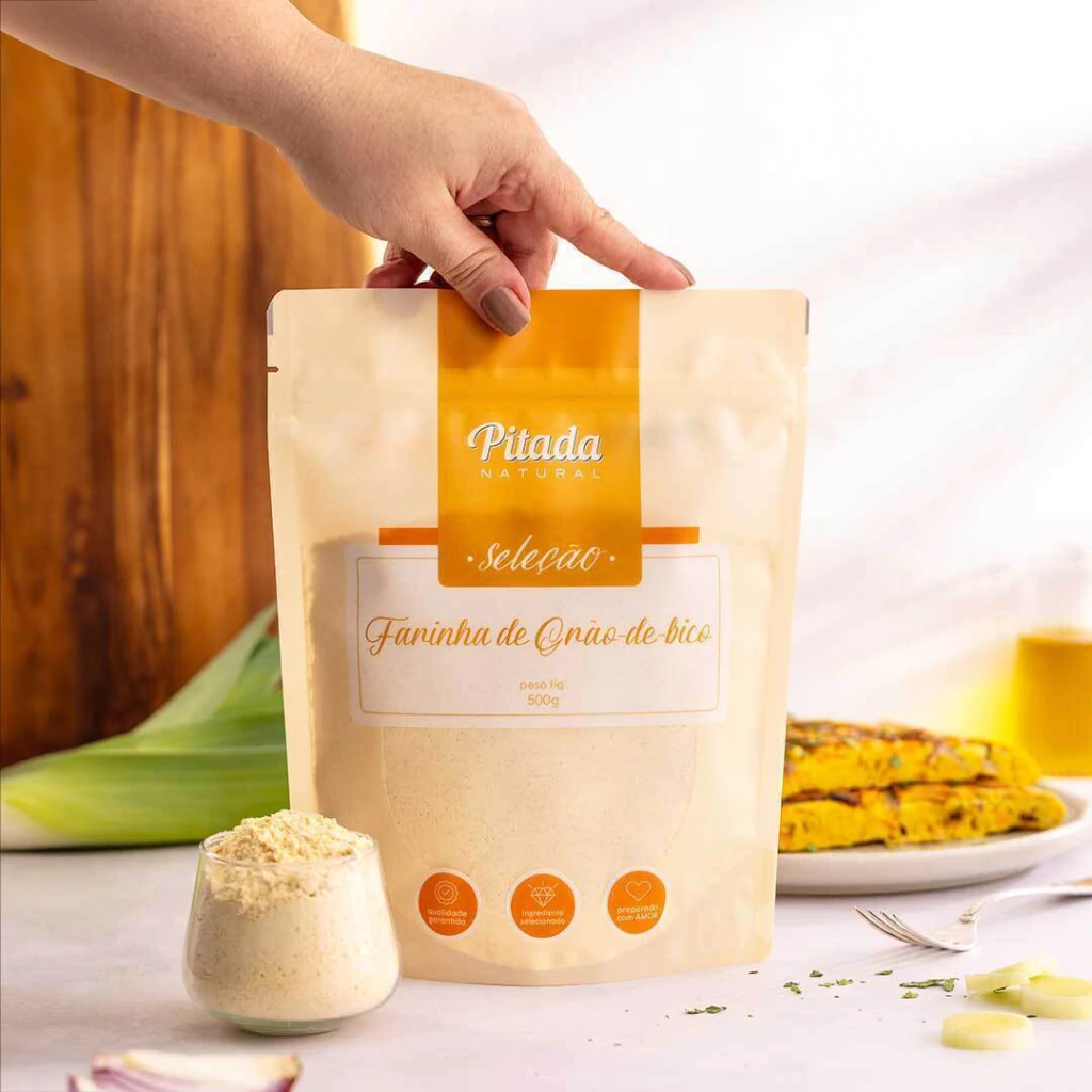 Versátil e super nutritiva, a farinha de grão-de-bico é feita a partir do grão cru moído e pode ser usada como ingrediente para receitas como tortas, salgados, grãomeletes (omelete de grãos), crepes, panquecas, farofas, quiches, bolos, muffins, etc.