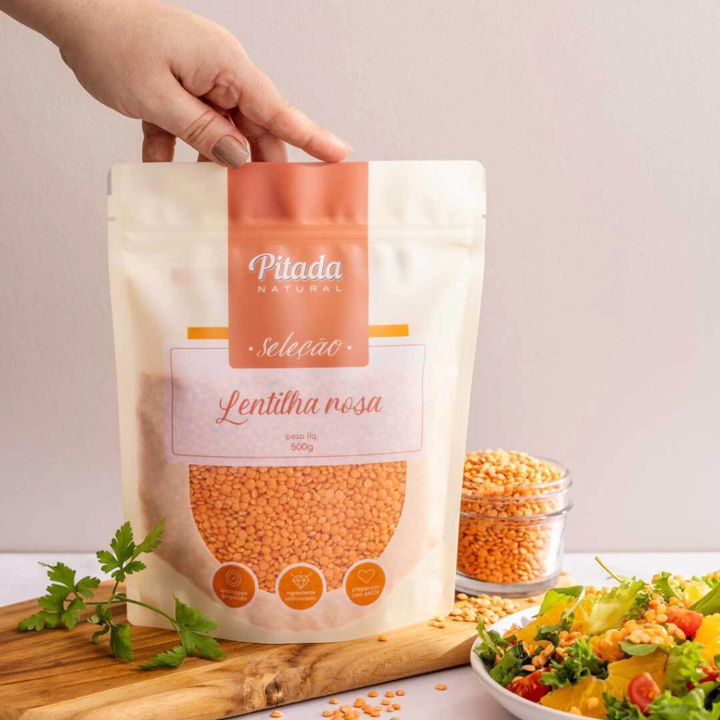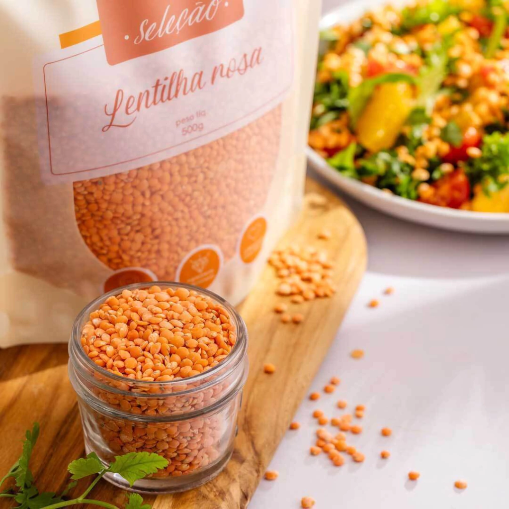 A Lentilha Rosa, conhecida também como Lentilha Vermelha ou Laranja, tem uma cor vibrante e é muito utilizada na culinária árabe, oriental e do mediterrâneo. Tem um sabor suave e uma textura macia e pode ser usada em sopas e cremes, panquecas, saladas, massa de torta, entre outras. Em nosso Blog e redes sociais, ensinamos muitas receitas com ela! É um ingrediente superversátil e nutritivo, rico em proteínas e fibras.